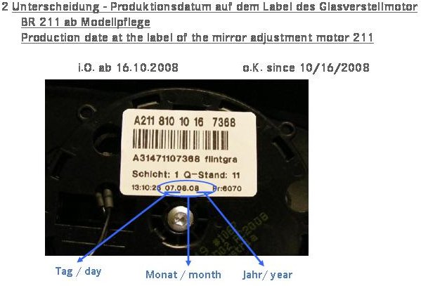 Attachment 2: Identification - Production date of outside mirror, model series 211