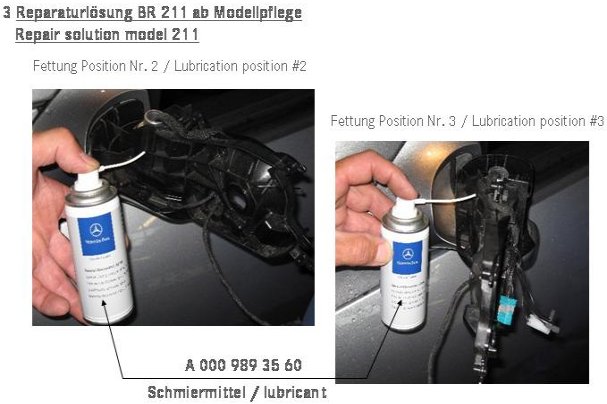 4. grease the sliding disk. It must be greased with the outside mirror in three positions (folded in, intermediate position and folded out => see attachments 4 and 5).