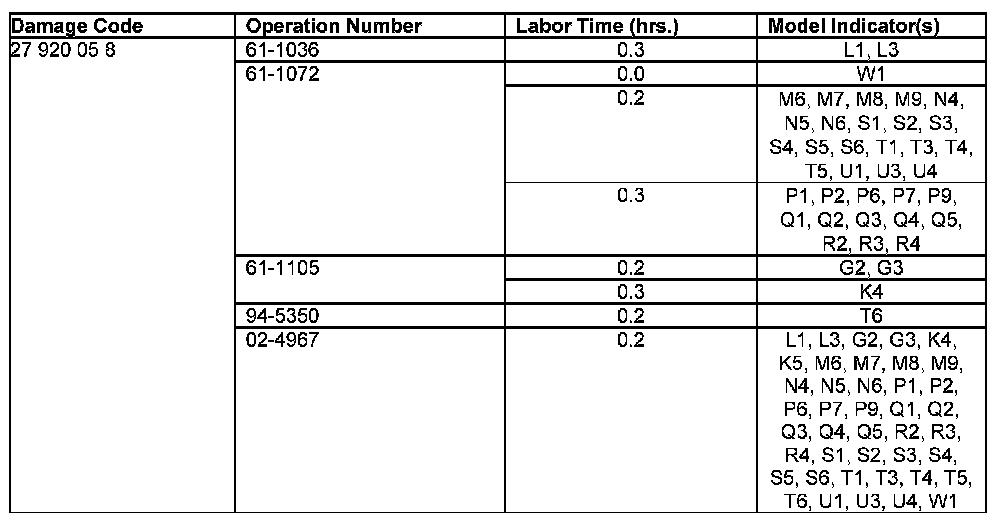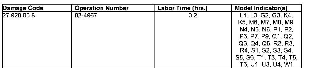 - The following allowable labor operation should be used when submitting a warranty claim for this repair: