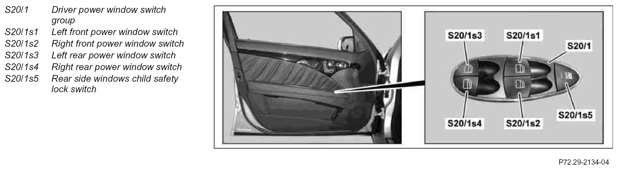 GF72.29-P-4112T Driver-Side Power Window Switch Group, Location/Task/Design/Function