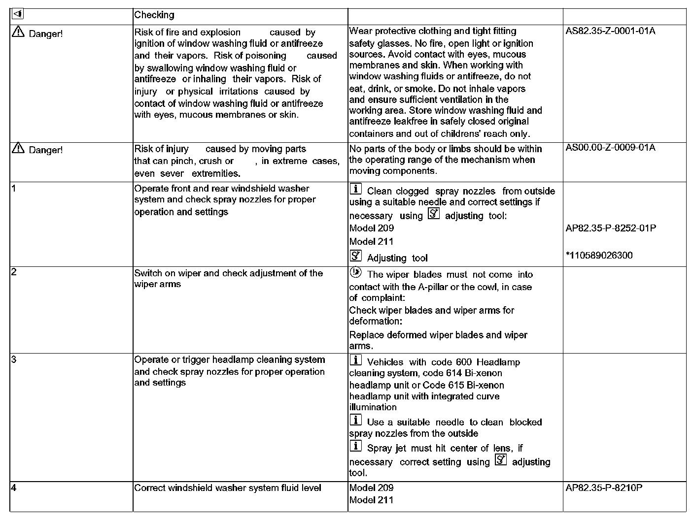 AP82.30-P-8252A Windshield Wipers, Windshield Washer System And Headlamp Cleaning System - Function Check