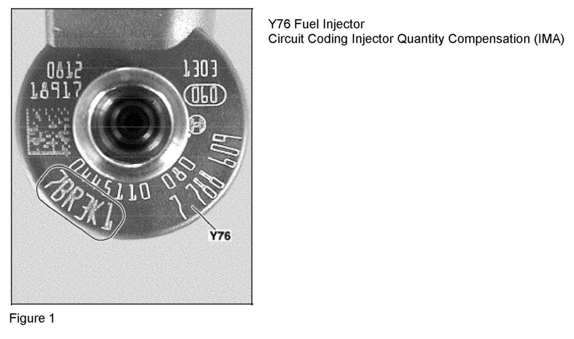 Injectors have a 6-digit number/letter combination (Figure 1, circle) on the magnet group. After injectors have been replaced, they are then IMA-coded using STAR Diagnosis under menu: - Control Unit --> Drive --> CDI3 --> Control Unit Adaptation --> Adjustment of injector injection quantities