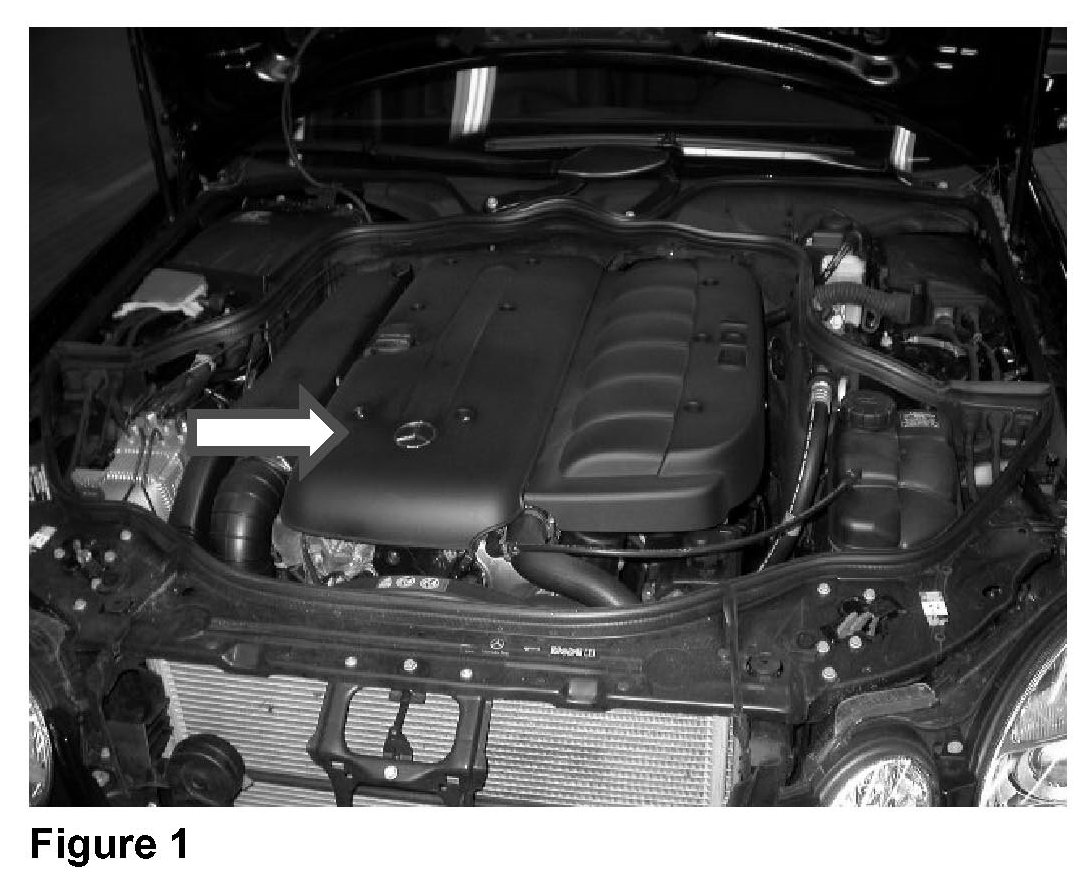 ^ Remove 9 bolts securing engine cover (Arrow, Figure 1), remove engine cover.