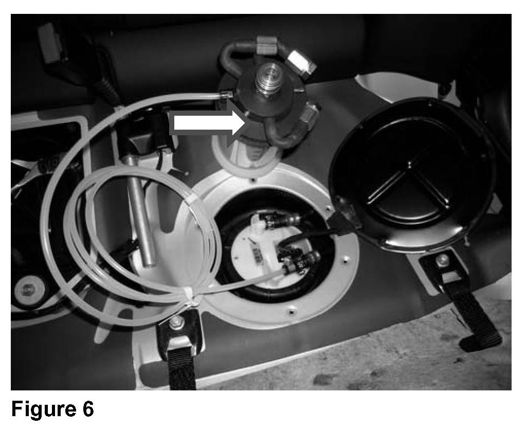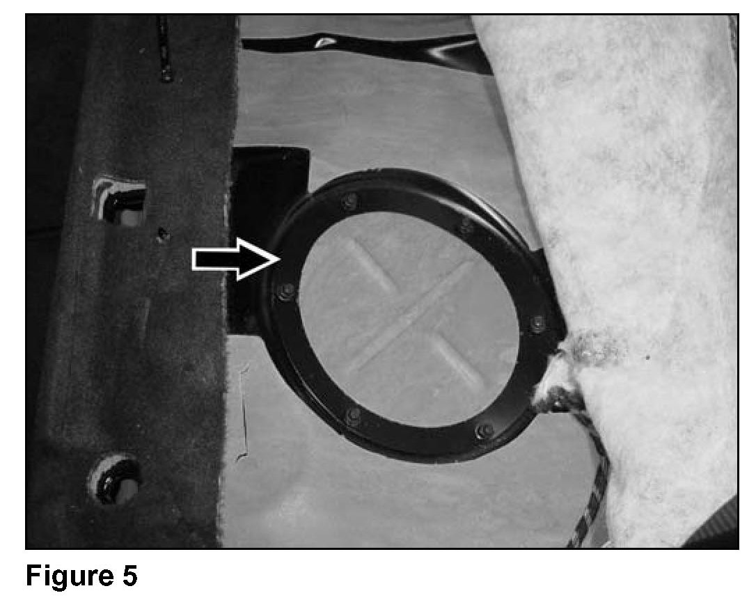 ^ Remove rear seat, remove fuel pump access cover (arrow, Figure 5).