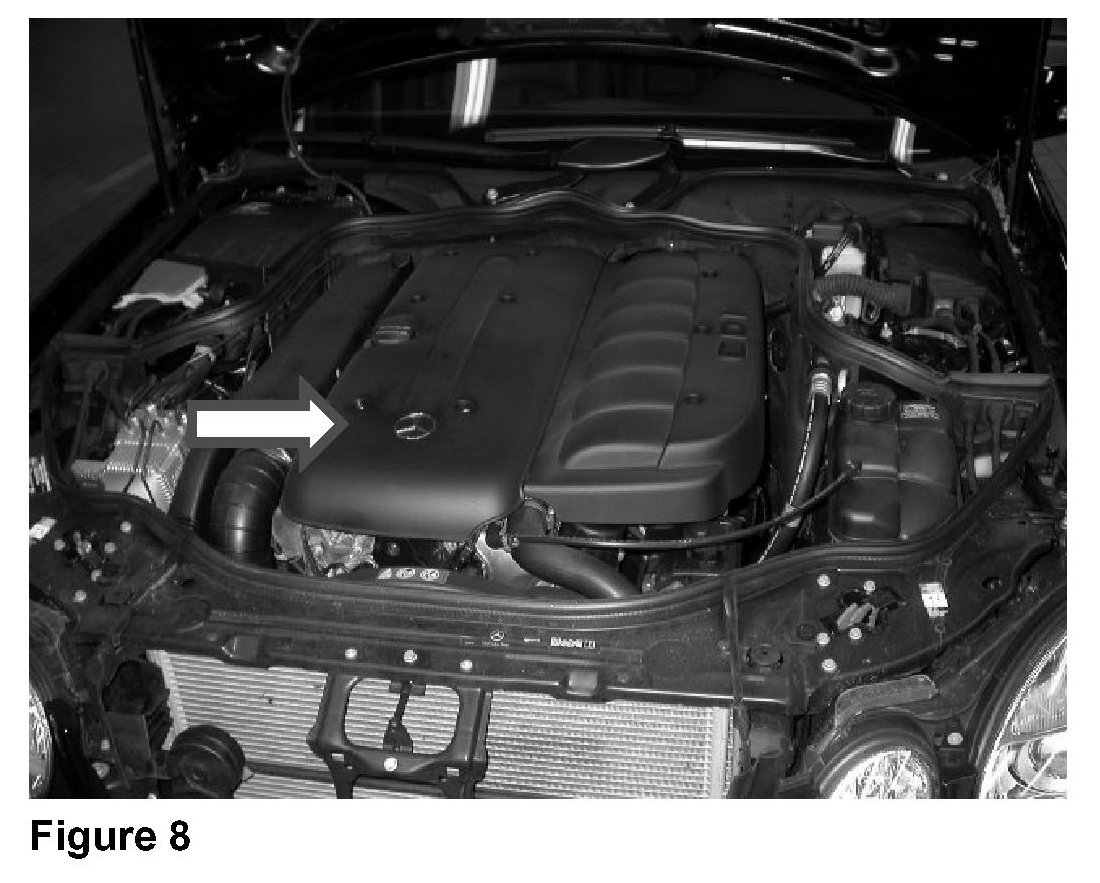 ^ Remove bolts securing engine cover (Arrow, Figure 8), remove engine cover.