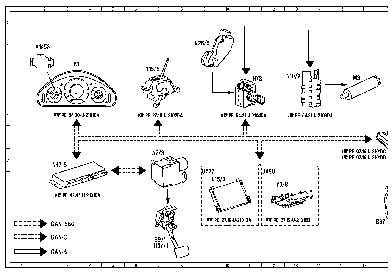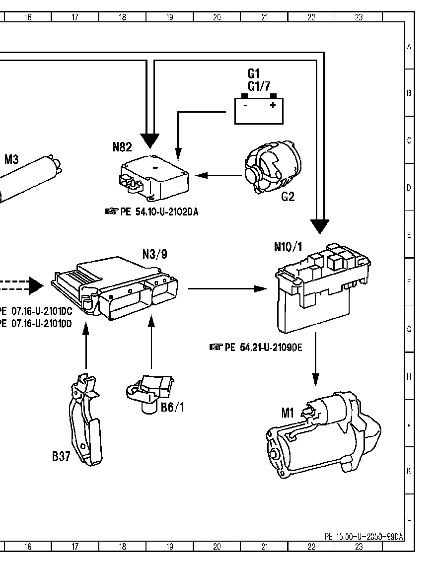 PE15.00-U-2050DA Electrical Function Diagram for Starter, Alternator, Battery
