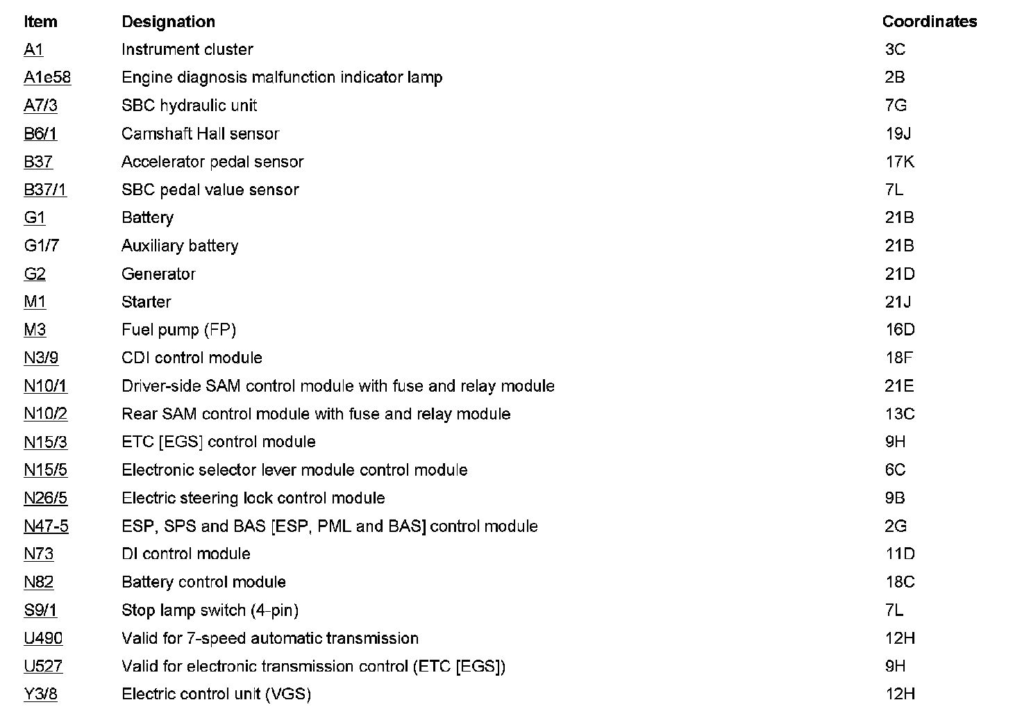 Component Locations: Component Location photographs can be found via their component names at the vehicle level. Component Locations