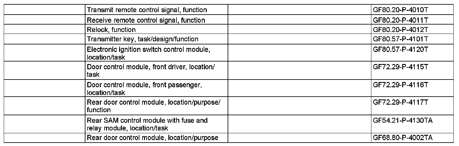 When the button "Unlock vehicle" is actuated once, the transmitter key (A8/1) sends a signal to the corresponding receiver in the vehicle via radio and infrared signals. If the access authorization is valid, the EIS control module (N73) transmits the command global unlocking to the left front door control module (N69/1), right front (N69/2), left rear (N69/3), right rear (N69/4), the rear SAM control module with fuse and relay module (N10/2) and the rear door control module (N111) via the CAN interior compartment.