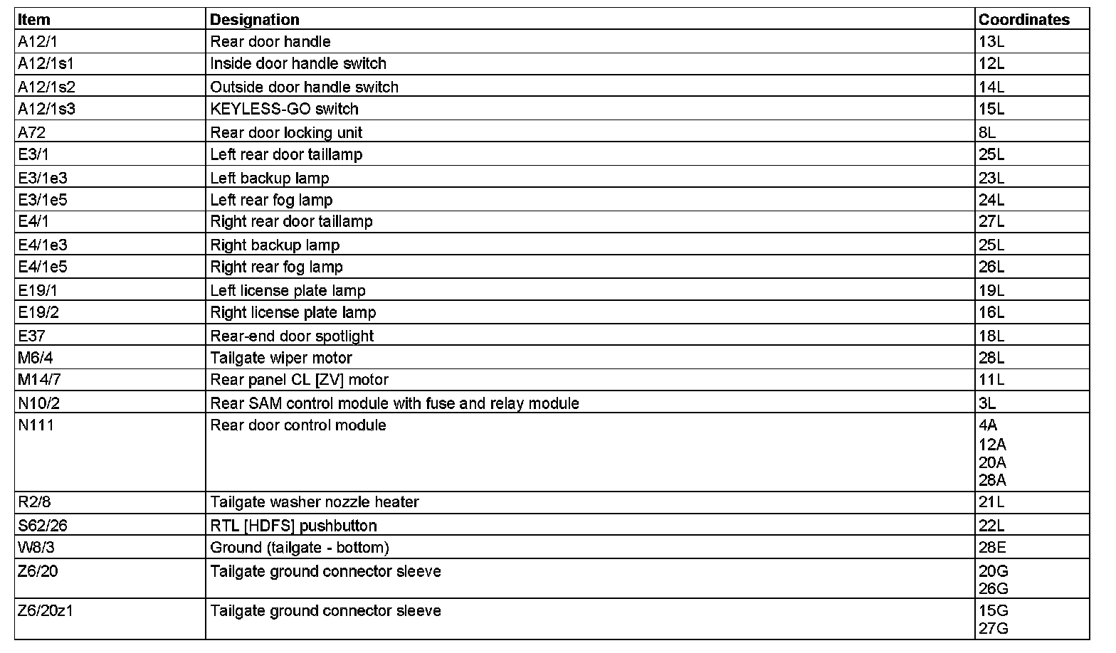 Component Description/Coordinates, A12/1 To Z6/20z1: