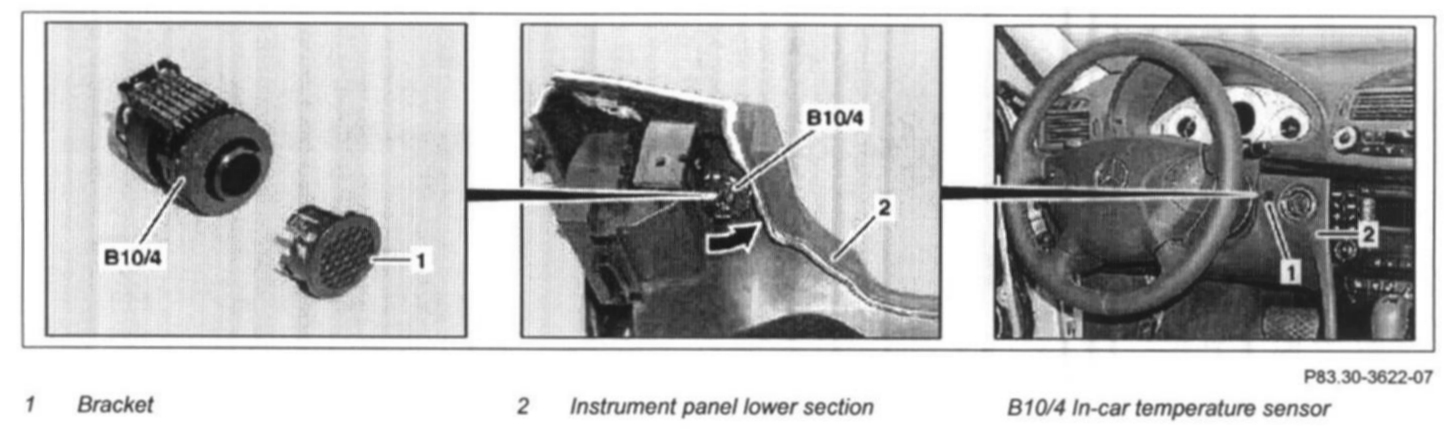 3 Separate electrical connector at the in-car temperature sensor (B10/4)