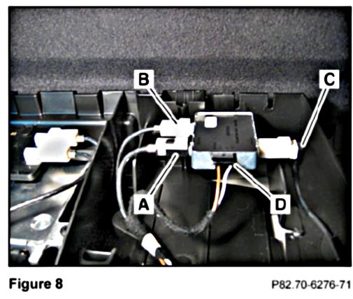 3. Connect the smaller connector (B, Figure of the MOST adapter cable to the VCS control module (B, Figure 11).