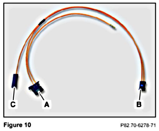 1. Find the MOST adapter cable (Figure 10) for CTEL and VCS in the kit. Note: Identify the MOST adapter cable for CTEL and VCS by its two connectors (A and B, Figure 10) and one coupling (C, Figure 10).