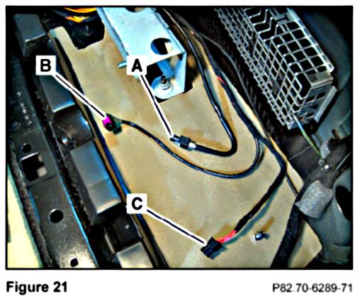 3. On the right side of the carrier plate, find, in the same harness as the antenna switch cables, the: