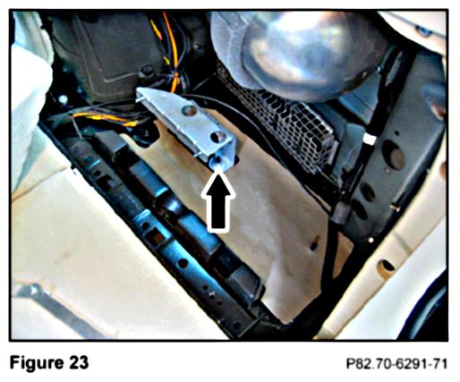 2. In the exposed right side of the load compartment, remove the M5 nut (Figure 23) securing the support beam on the floorboard.