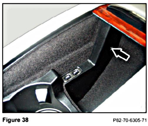2. Remove the T20 Torx screw (Figure 38) at the rear of the Tele Aid/Roadside Assistance button assembly.