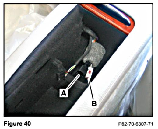 3. Find the foam sleeve (Figure 39) containing connectors in the area exposed by the removed Tele Aid/Roadside Assistance button assembly.