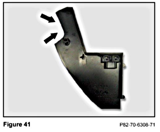6. Use a utility knife and pliers, or equivalent, to remove the cutout (Figure 41) along the rear of the plastic panel for the Tele Aid/Roadside Assistance button assembly.