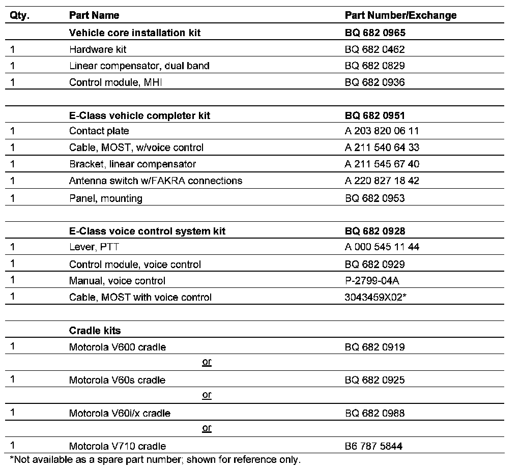 2. Unpack and compare the installation kit contents against the Parts Information list - Section P, page 22.
