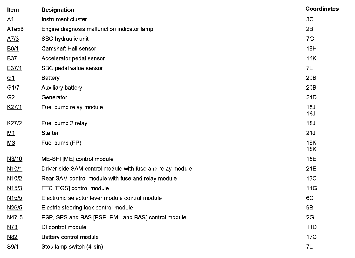 Component Locations: Component Location photographs can be found via their component names at the vehicle level. Component Locations