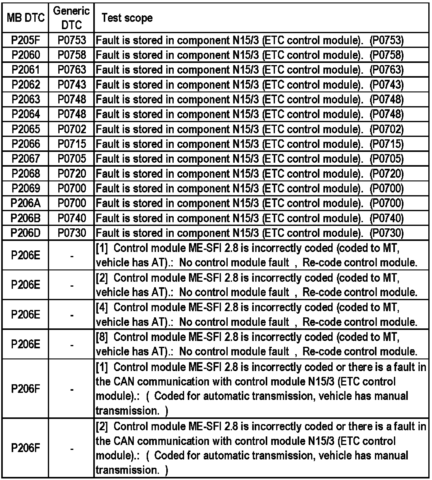 MB DTC P205F - P206F: