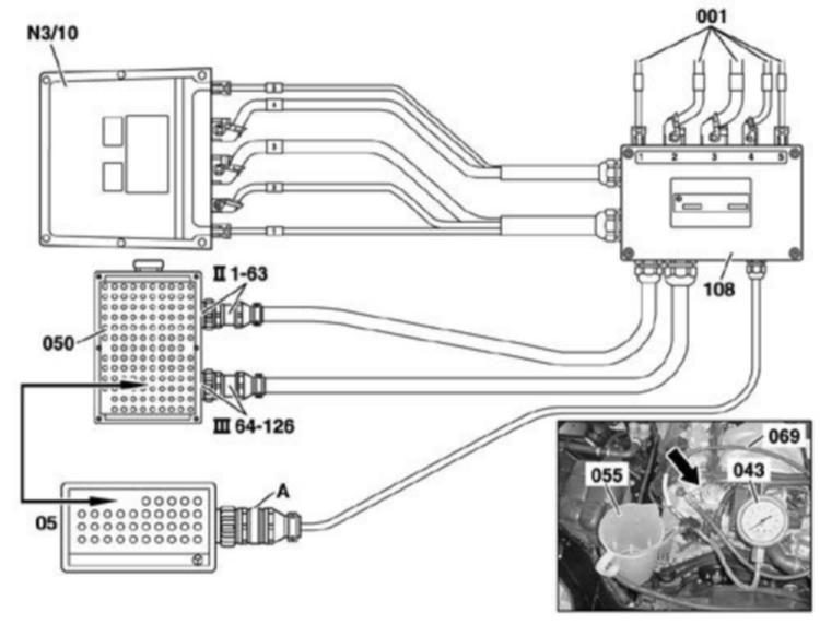 - 001 Sockets of component N3/10 (ME-SFI control module)