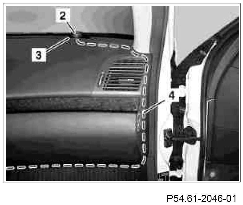 1 Drill a hole (arrow) of dia. 6 mm in the top left corner of the glove compartment from the front.