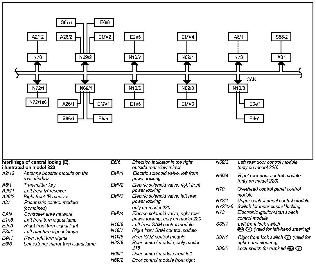 On model 215 the rear door control modules (N69/3, N69/4) are replaced by the rear control module (N22/6).