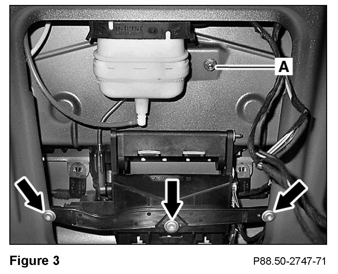 4. Reinstall the cover (A, Figure 1) on the bottom of the trunk lid by reinstalling the three 4.2 mm sheet metal screws (Arrows, Figure 1).