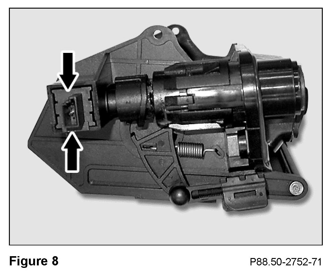 2. Insert the included microswitch (Figure 8) for the trunk lid lock into the cavity in the left side of the assembly.