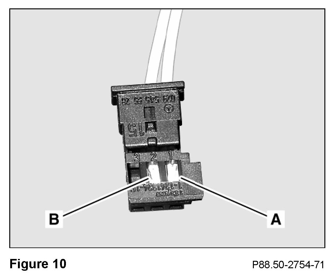 6. Flag the wire coming from pin # 1 (A, Figure 10) of the connector with a piece of masking tape (A, Figure 11) to identify it as the ground wire.