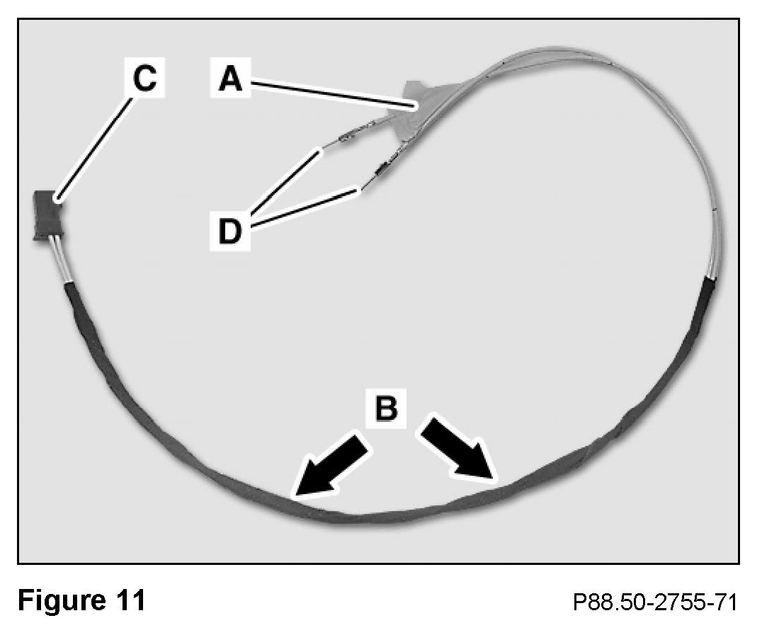 7. Wrap the wires with electrical tape (B, Figure 11) starting approximately ten inches from the connector (C, Figure 11).