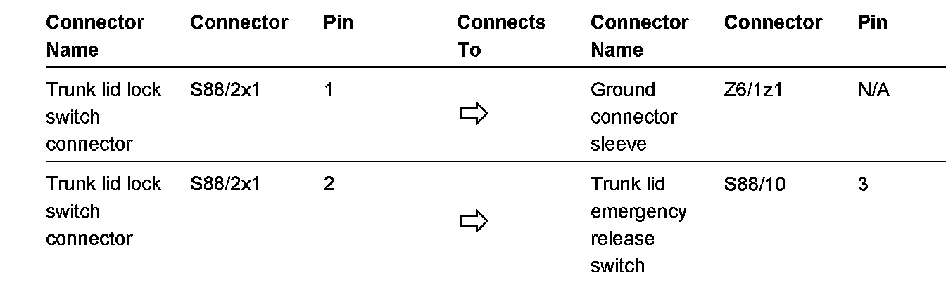 ^ With the trunk lid lock tumbler in the neutral position (B, Figure 17), verify the trunk will open when: