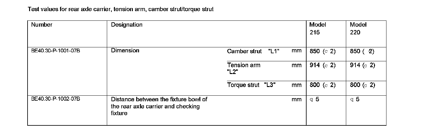 Test Values For Rear Axle Carrier, Tension Arm, Camber Strut/torque Strut: