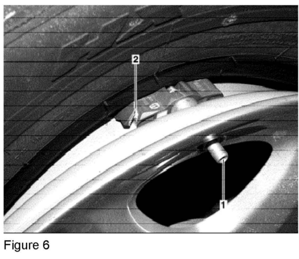 The increased bead cable forces of the tire can break the wheel sensor in the visible area (2-Figure 6) and/or on the bottom side.