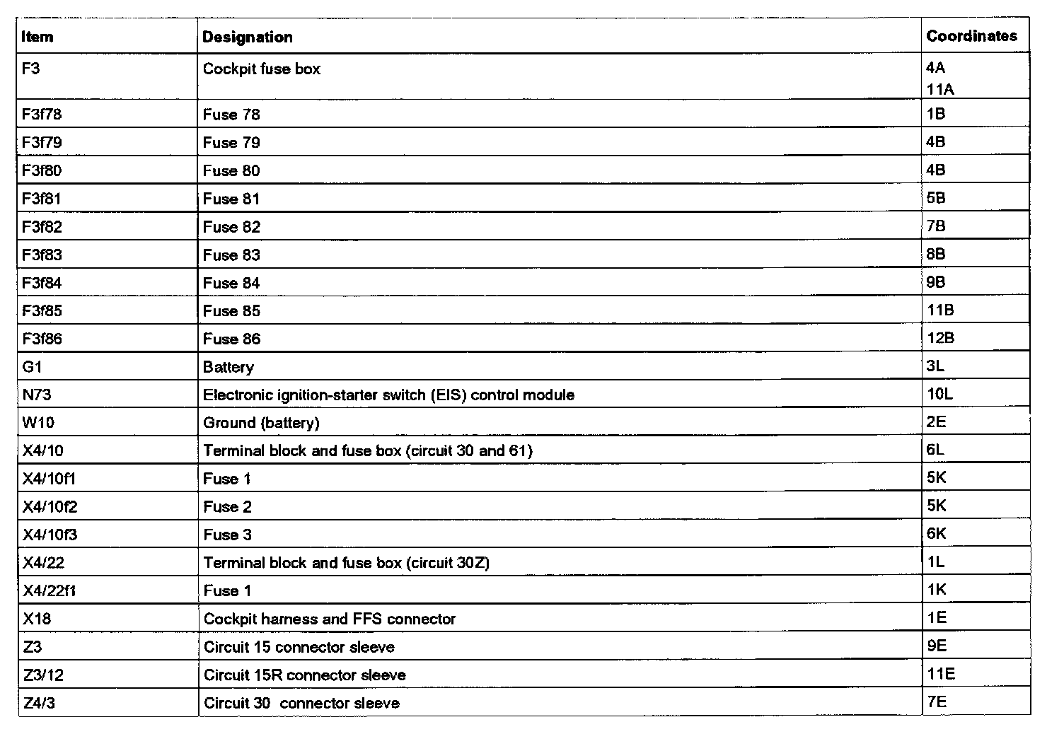 Legend For Fuse Box (F3):
