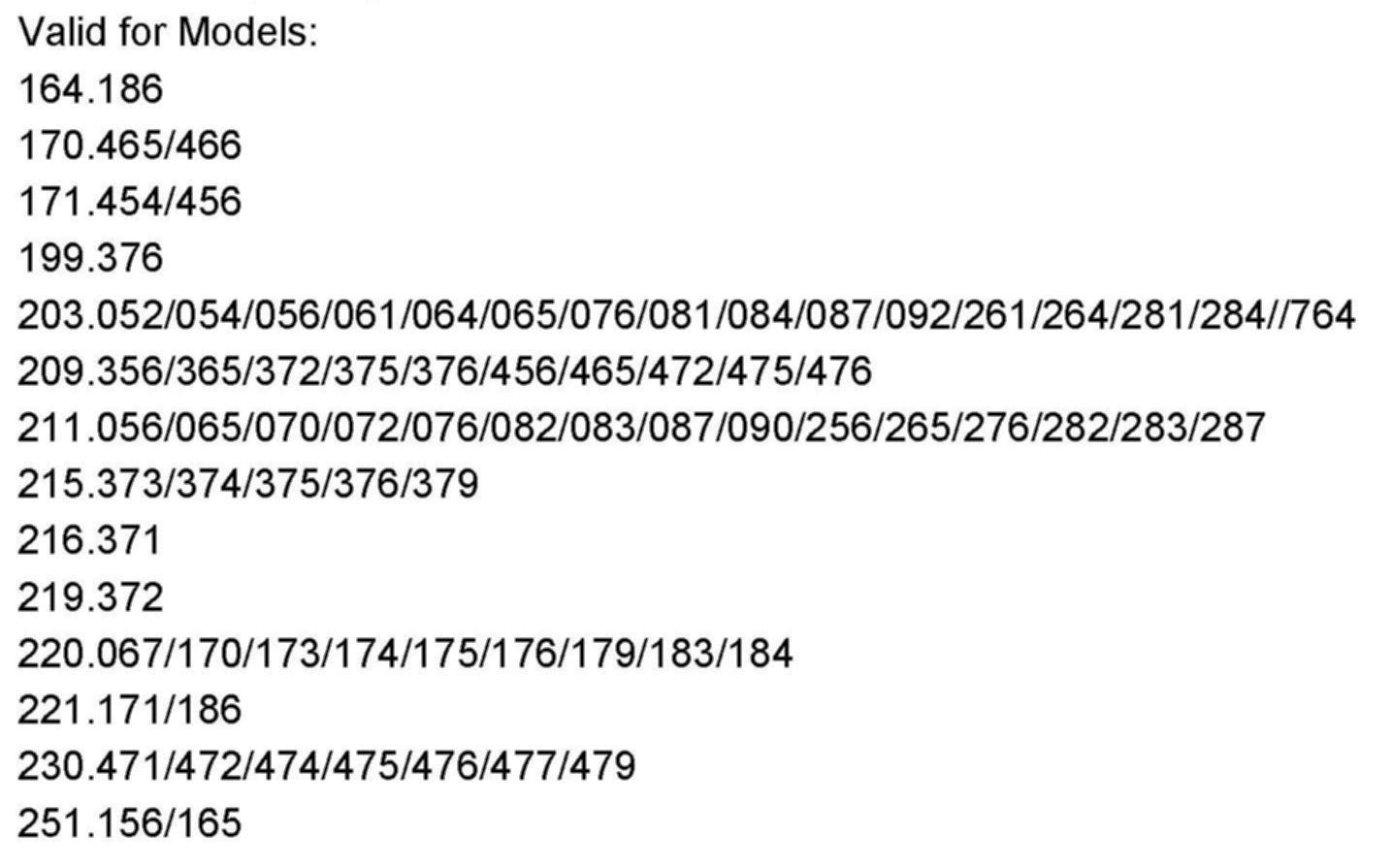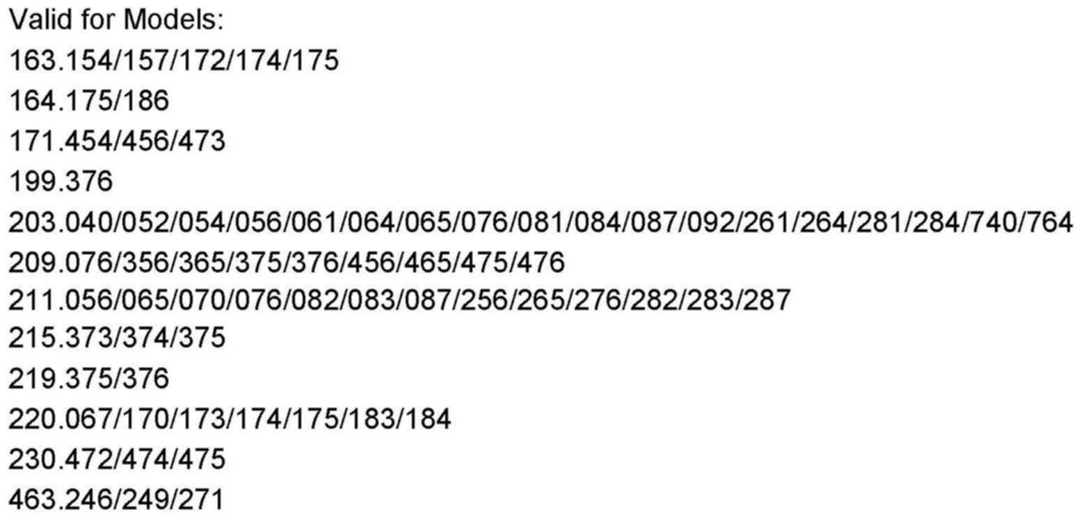 Valid for Models shown above.