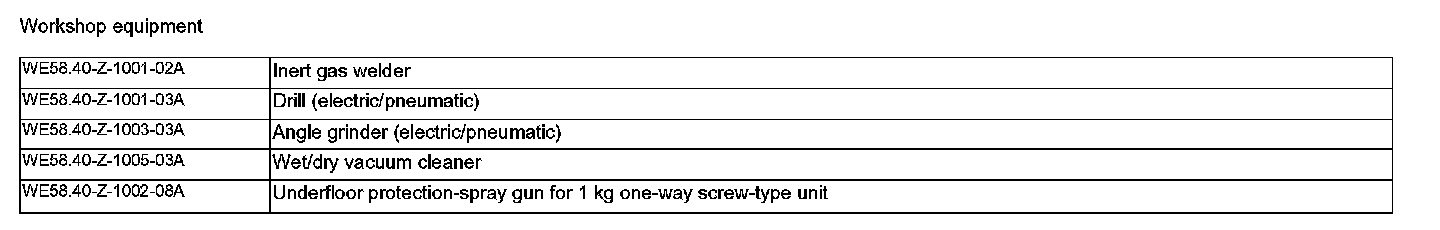 Workshop Equipment: