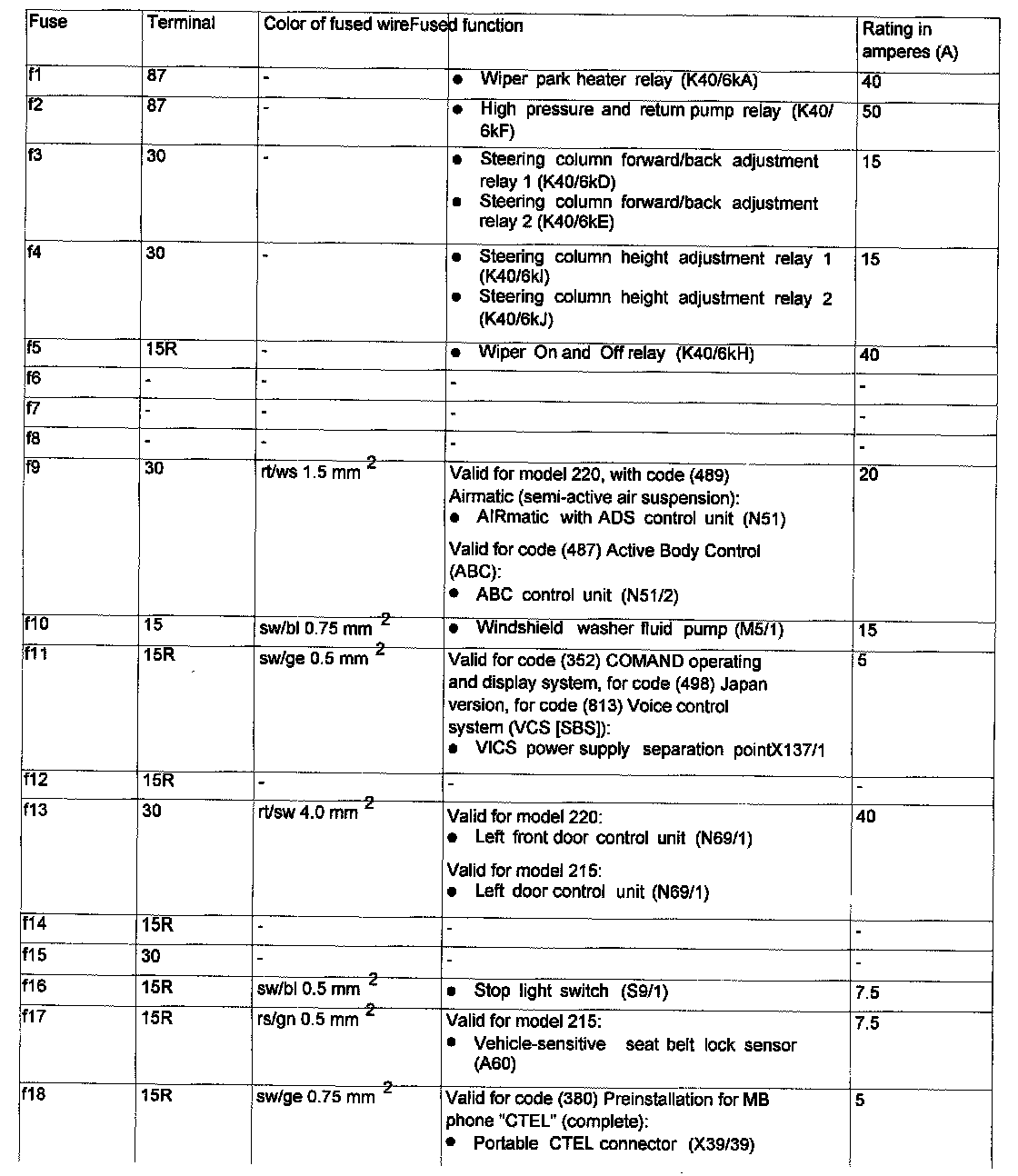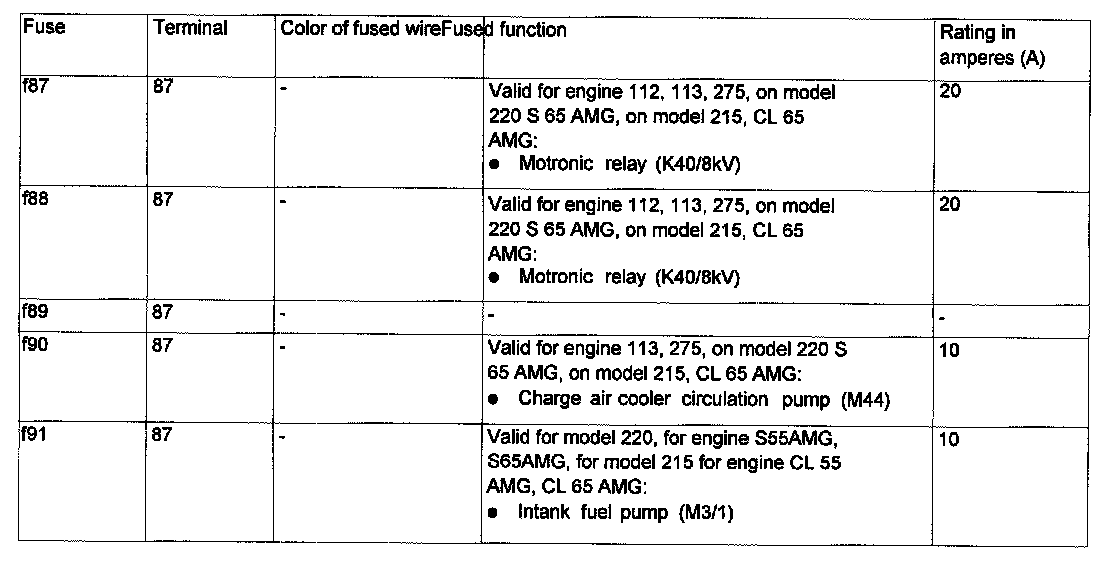 Fuse 87 - 91, As Of 9/1/03: