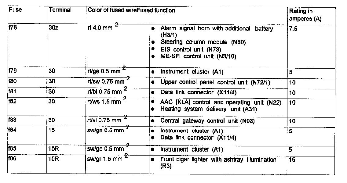 Assignment in the Fuse and Relay Box in the Left Engine Compantment