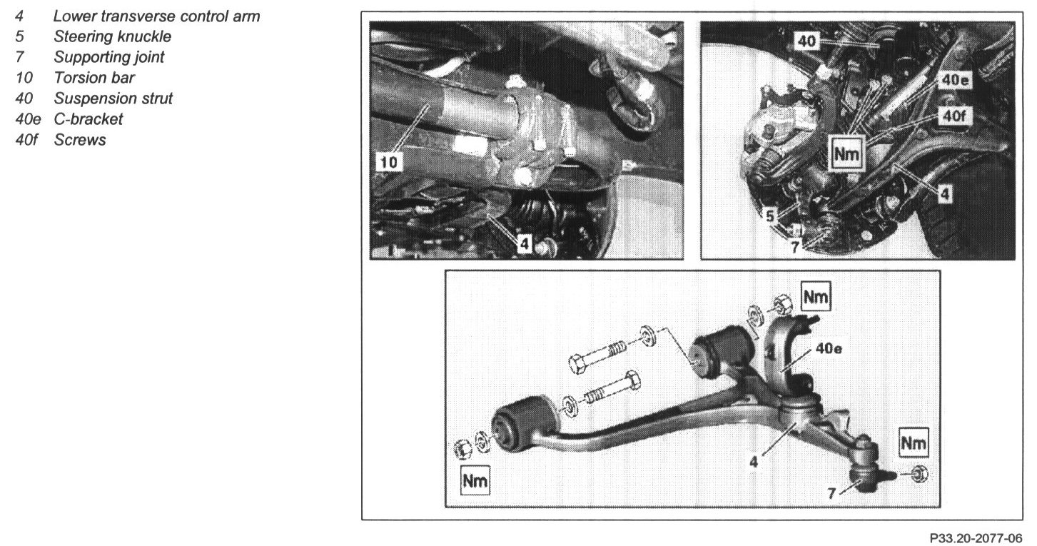 6 Detach C-bracket (40e) from lower transverse control arm (4)