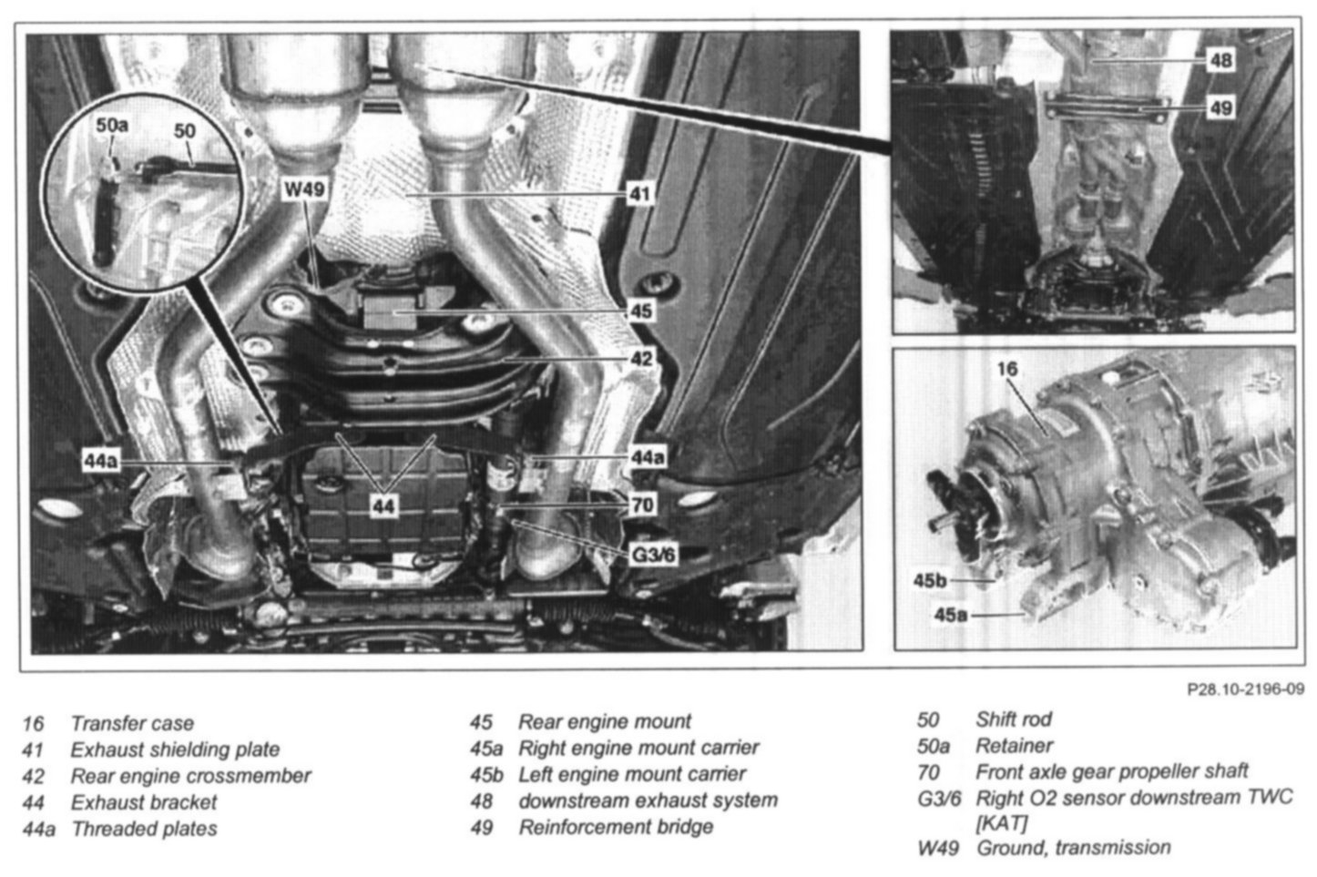 4 Detach exhaust shielding plate (41) for the front propeller shaft behind the transfer case