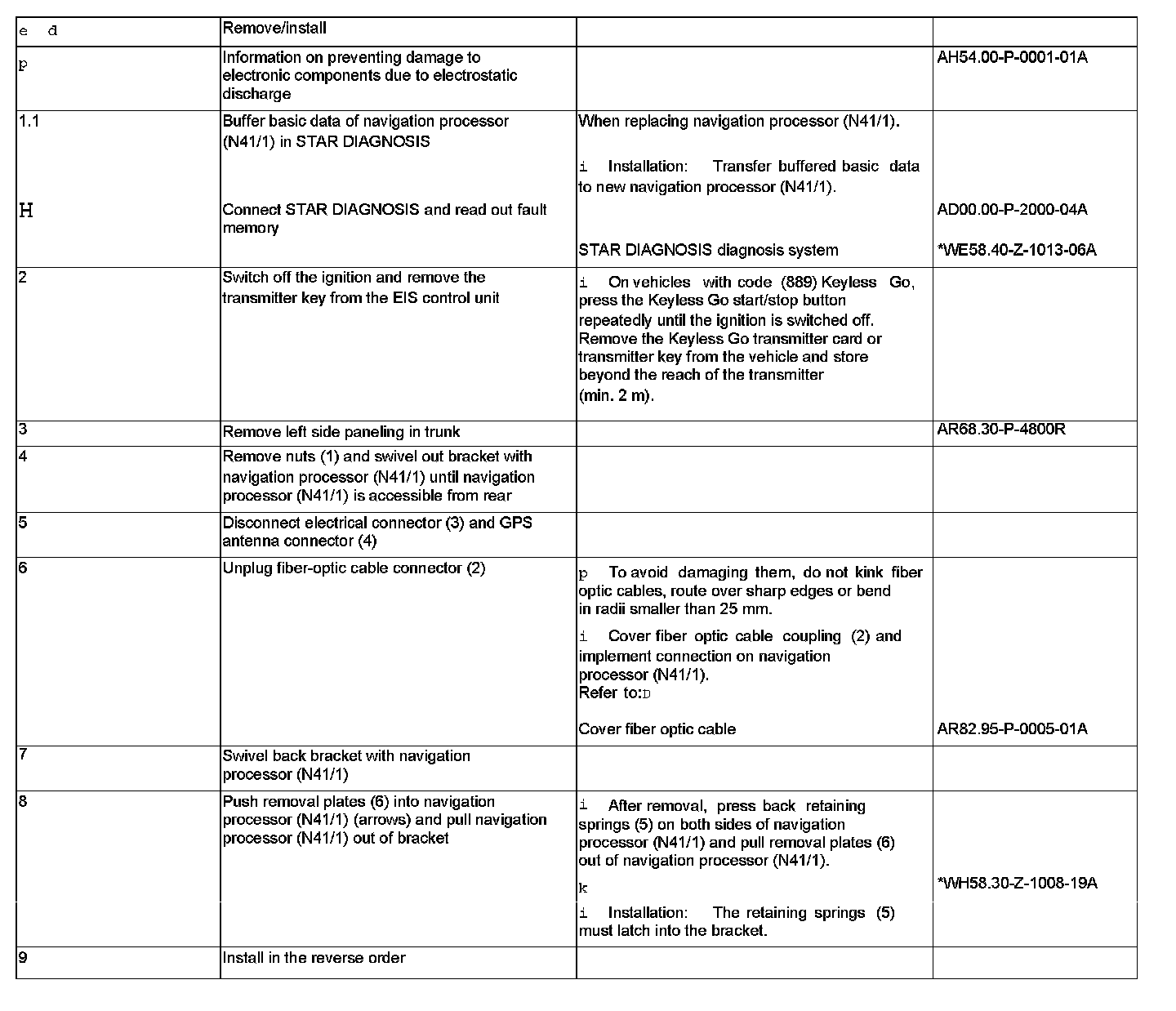 AR82.85-P-7373R Remove/Install Navigation Processor