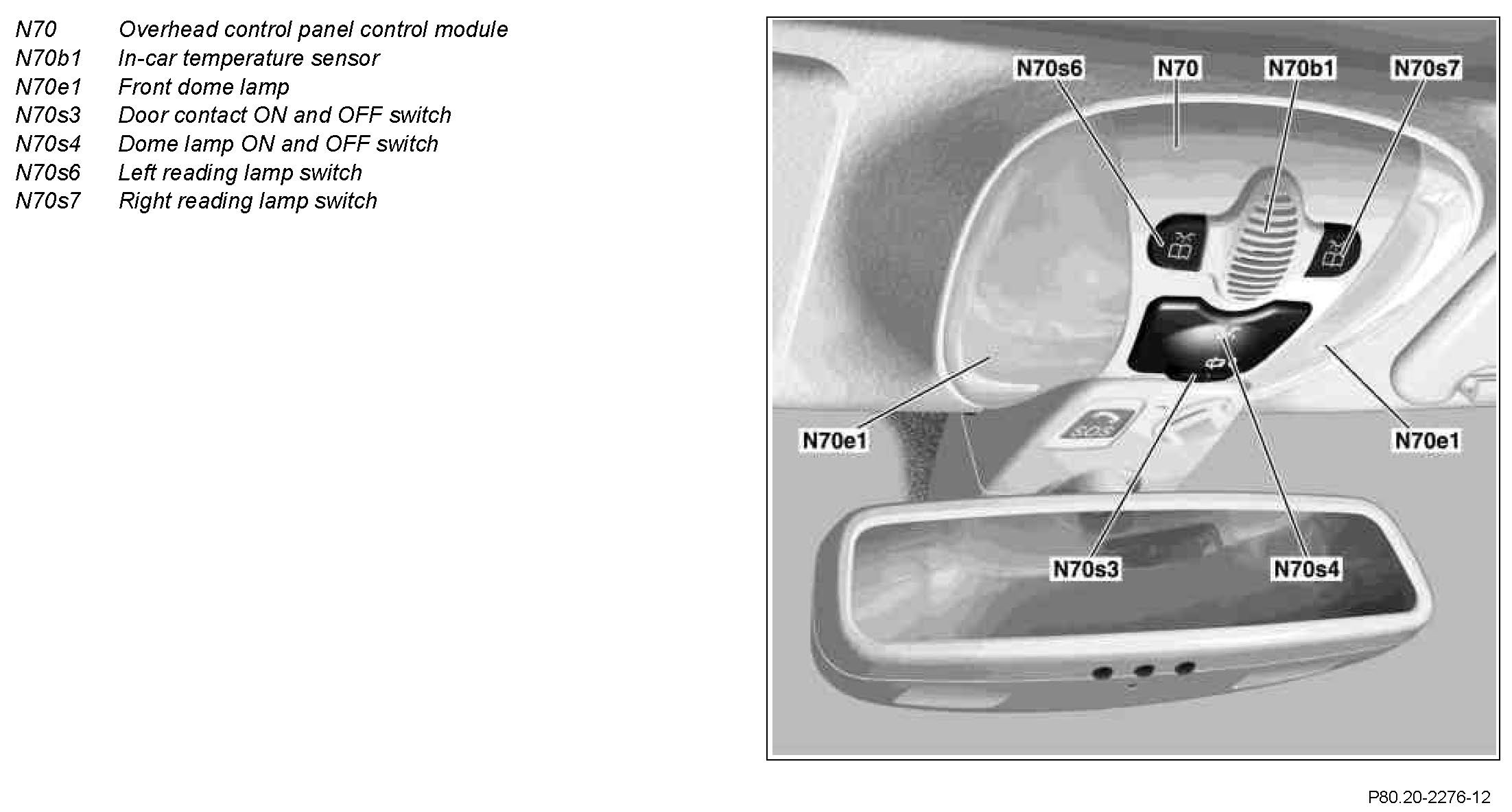 In the overhead control panel control module (N70) the switches, lamps and sensors listed above are integrated in addition to the actual control modules.