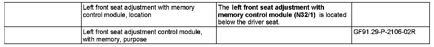 GF91.29-P-2106R Left Front Seat Adjustment Control Module With Memory Location/Task