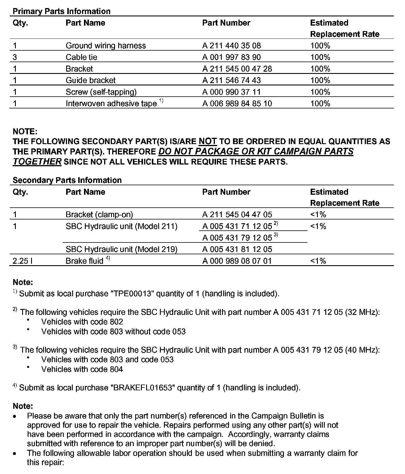 Recall - SBC Wire Harness Modifications