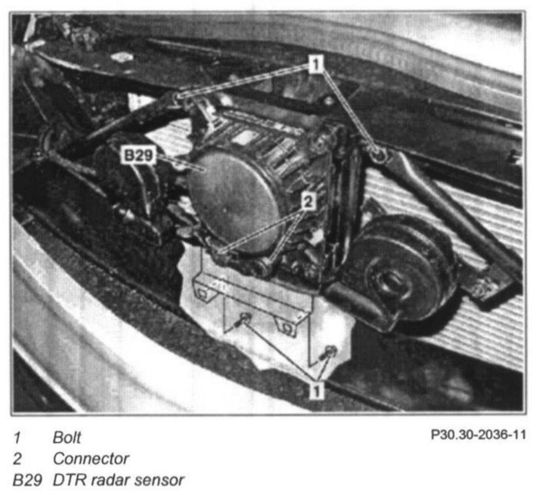 4 Unscrew screws (1) and remove DTR radar sensor (B29)