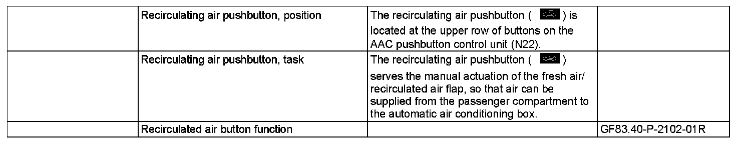 GF83.40-P-2145R Recirculating Air Button, Location/task/function