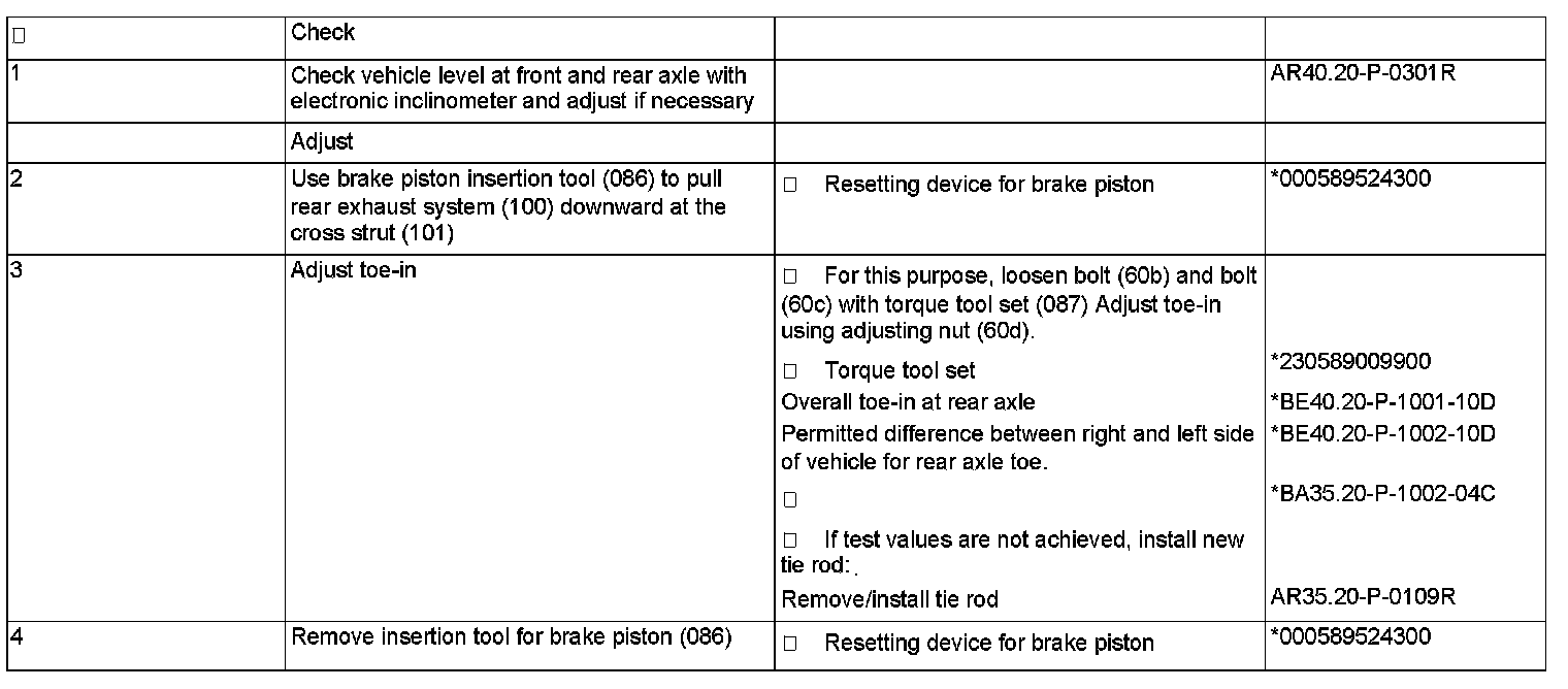 AR40.20-P-0332R Check and adjust toe-in on rear axle