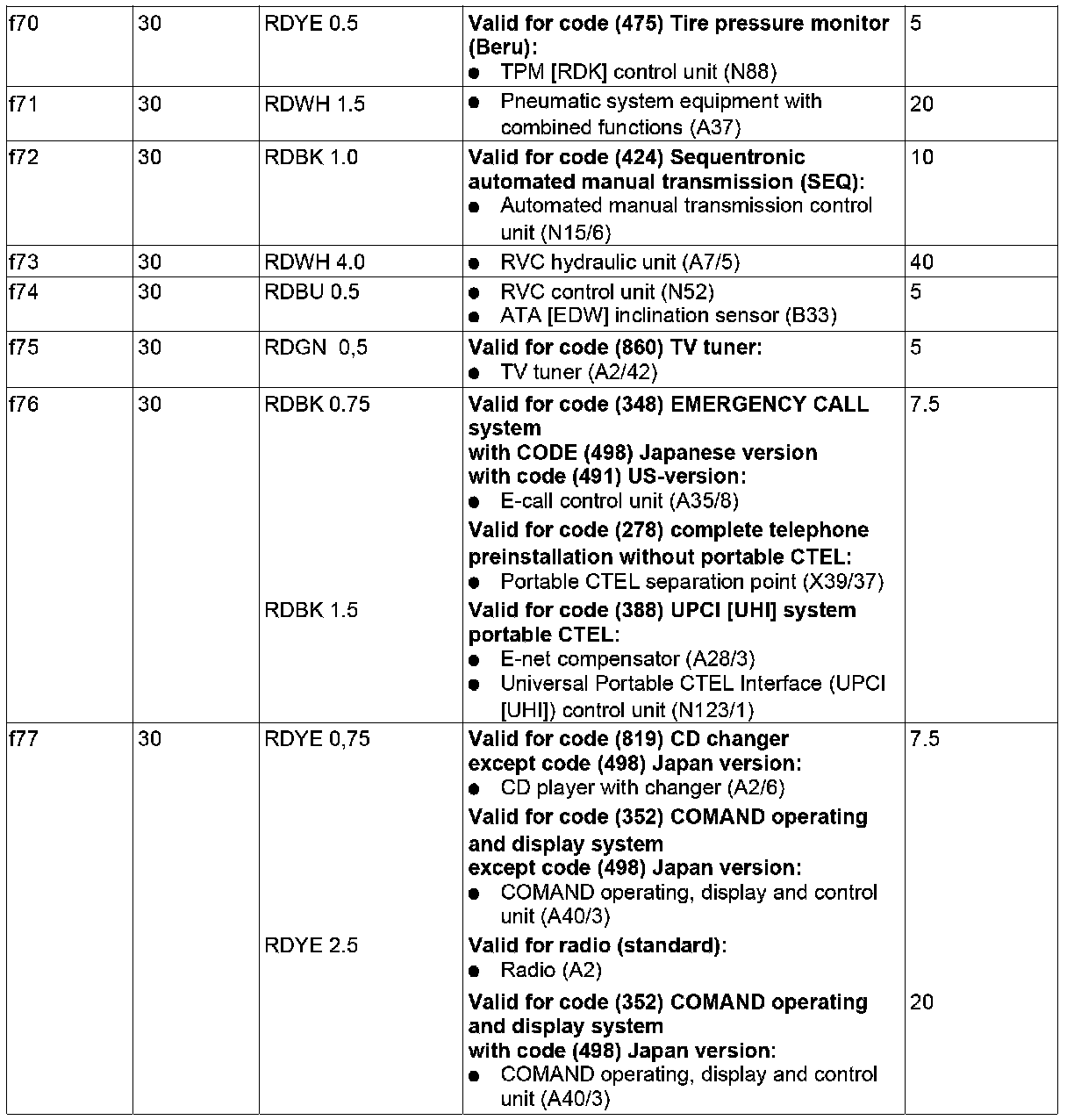 GF54.15-P-1256-01RB Fuse Assignment Of Rear Fuse And Relay Box