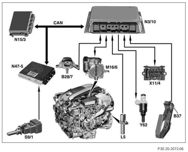 Faults detected by the accelerator pedal sensor (B37) and the throttle valve actuator are stored in the fault memory and can be read out and deleted with STAR DIAGNOSIS.